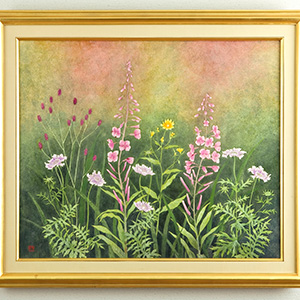月下美人の染めをしているNIさん、ヒビ蝋で化する部分が終わり、防染のためにフセ蝋をおいています。私のろうけつ染め、2種類の蝋を使って表現しています。![]()