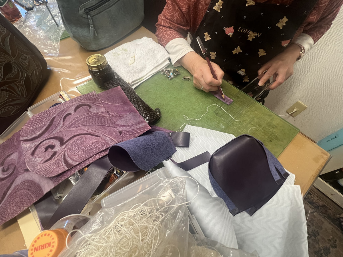 NTさん、バッグの仕立て最終段階です。仕上がった作品は後ほど生徒作品にアップします。![]()